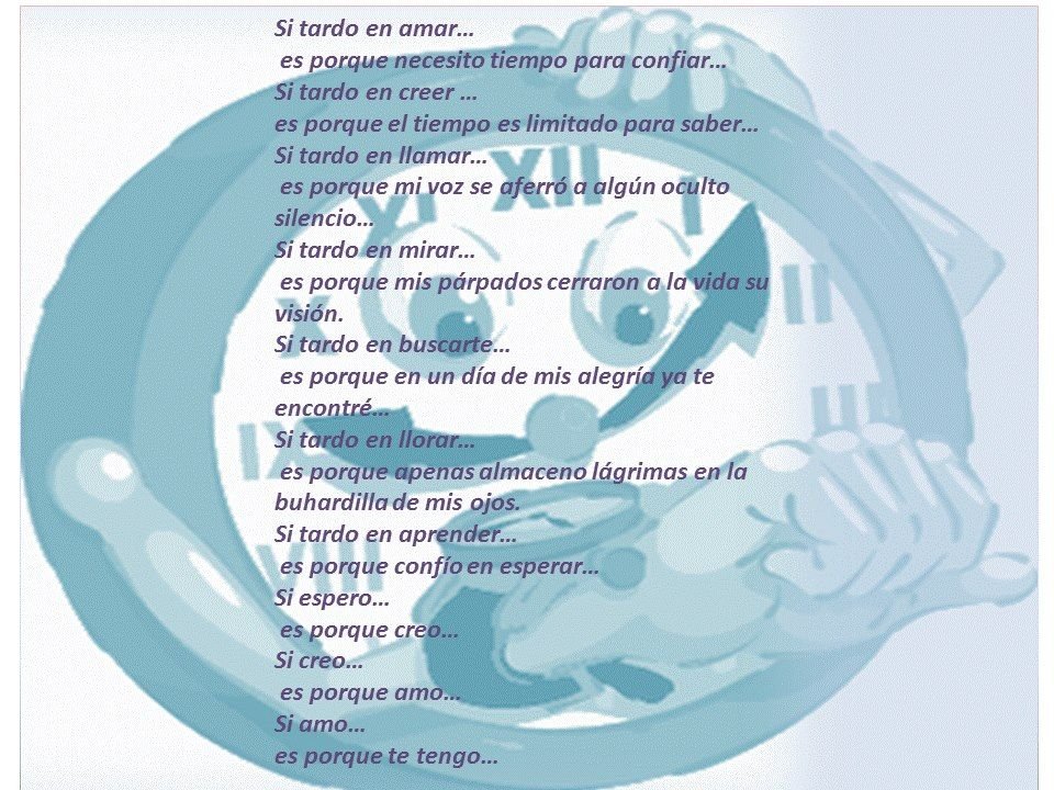 Si tardo en amar… es porque necesito tiempo para confiar… Si tardo en creer … es porque el tiempo es limitado para saber… Si tardo en llamar… es porque mi voz se aferró a algún oculto silencio… Si tardo en mirar… es porque mis párpados cerraron a la vida su… Leer más »